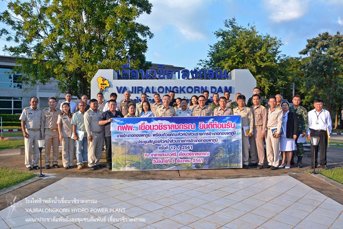 เมื่อวันที่ 3 ธันวาคม 2561 นายสืบสาย ศักดิ์โสภิษฐ์ นายอำเภอทองผาภูมิ พร้อมด้วยนายไววิทย์ แสงพานิชย์ ผู้อำนวยการเขื่อนวชิราลงกรณ เป็นประธานการประชุมสัญจรหัวหน้าส่วนราชการอำเภอทองผาภูมิ ครั้งที่ 12 ประจำปี 2561 พร้อมด้วยผู้บริหารระดับสูง หัวหน้ากอง หัวหน้าแผนก เขื่อนวชิราลงกรณ และหัวหน้าส่วนราชการฯ เข้าร่วมประชุม ณ ห้องประชุมเขาแหลม 1 เขื่อนวชิราลงกรณ โดยมีวาระการประชุม เรื่องการรายงานผลการปฏิบัติงานของหน่วยงานราชการ