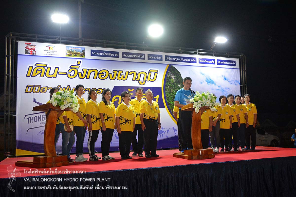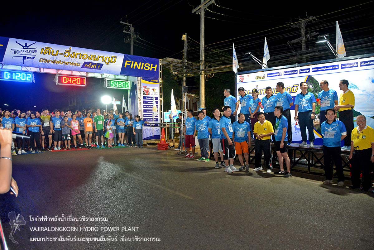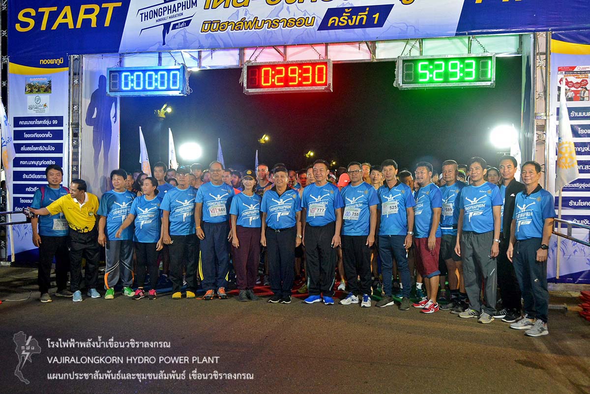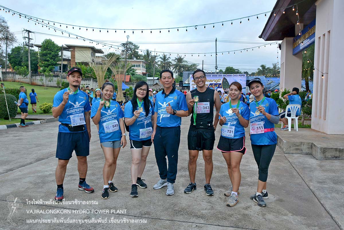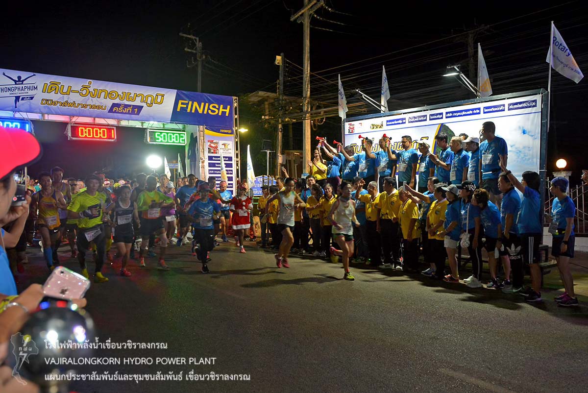 เมื่อวันที่ 23 ธันวาคม 2561 นายอภิรักษ์ ทองโต วิศวกรระดับ11 พร้อมด้วยผู้ปฏิบัติงานเขื่อนวชิราลงกรณ เข้าร่วมกิจกรรม "เดิน-วิ่งทองผาภูมิ มินิฮาฟมาราธอน" เพื่อสร้างความร่วมมือระหว่างภาครัฐ เอกชนและประชาชน ในรูปแบบเสริมสร้างสุขภาพด้วยการออกกำลังกาย สร้างความตระหนักให้เห็นถึงความสำคัญในการดูแลสุขภาพของตนเอง ณ เทศบาลตำบลทองผาภูมิ