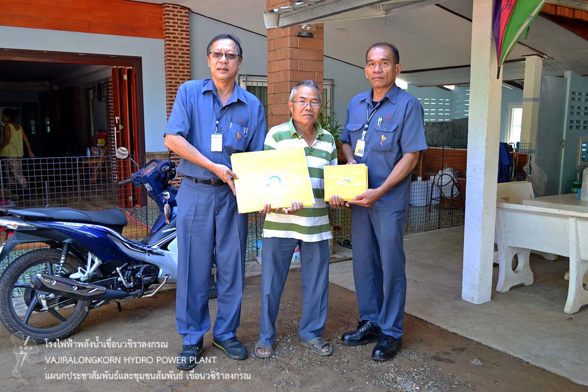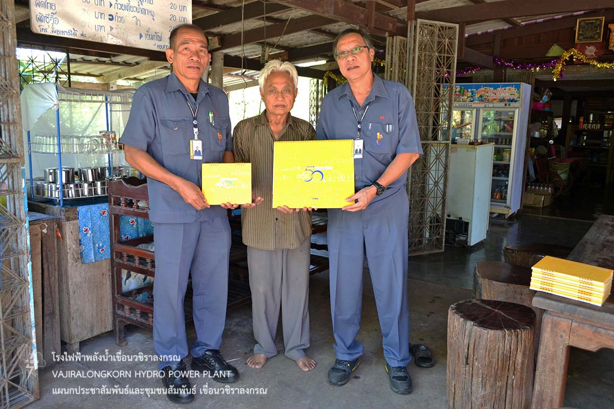 เมื่อวันที่ 25 ธันวาคม 2561 นายฤกษ์ชัย ศิริพัฒน์ ช่างระดับ 6 แผนกโรงงาน และนายจุมพล ศรีทองอินทร์ ช่างระดับ 5 แผนกบำรุงรักษาไฟฟ้า เป็นผู้แทนหัวหน้ากองบำรุงรักษาโรงไฟฟ้า เขื่อนวชิราลงกรณ นำปฏิทิน กฟผ. ประจำปี 2562 มอบให้กับนายสมเดช จันทร์ภิรม อดีตผู้ปฏิบัติงานแผนกโรงงาน, นายทวี อินต๊ะนา อดีตผู้ปฏิบัติงานแผนกบำรุงรักษาบริเวณ, นายลาน โพธิ์แดง อดีตผู้ปฏิบัติงานแผนกบำรุงรักษาเขื่อนและอาคารโรงไฟฟ้า ณ บ้านพักในตำบลห้วยเขย่ง อำเภอทองผาภูมิ จังหวัดกาญจนบุรี ซึ่งอยู่ในความดูแลของกองบำรุงรักษาโรงไฟฟ้าเขื่อนวชิราลงกรณ