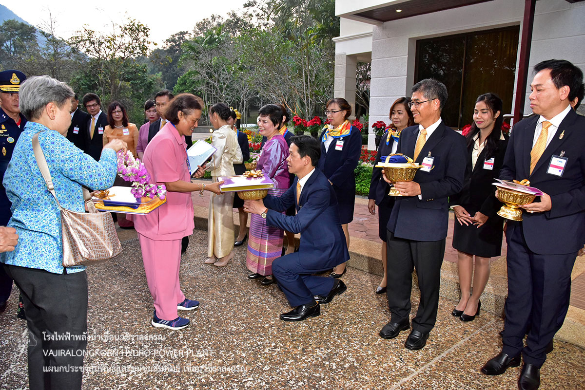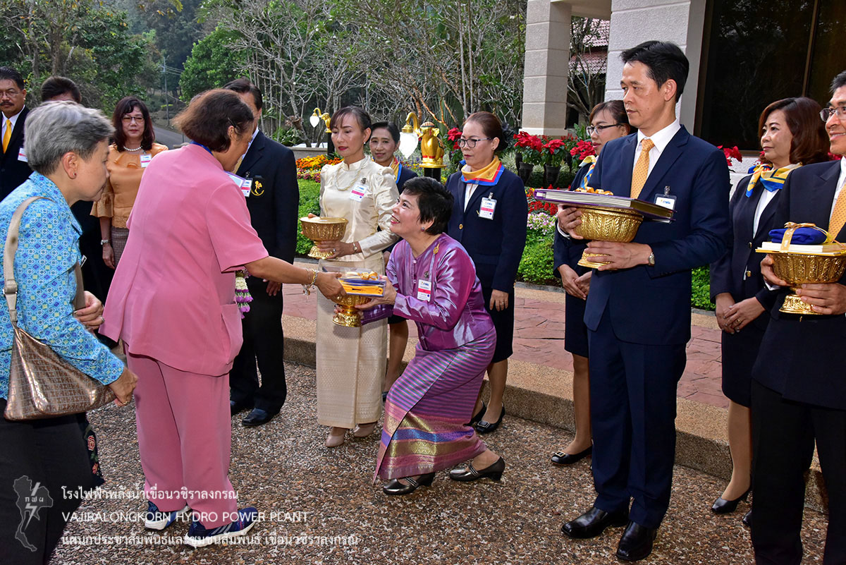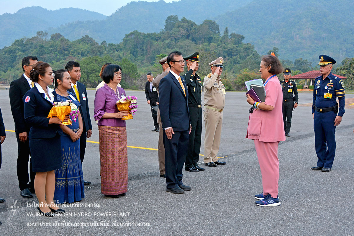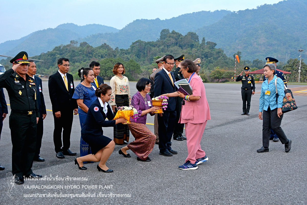 โดยมีนายณัฐวุฒิ แจ่มแจ้ง รองผู้ว่าการผลิตไฟฟ้า (รวฟ.) นางภาวนา อังคณานุวัฒน์ รองผู้ว่าการบริหาร (รวห.) นายจรัญ คำเงิน ผู้ช่วยผู้ว่าการผลิตไฟฟ้าพลังงานหมุนเวียน (ชฟม.) นายไววิทย์ แสงพานิชย์ ผู้อำนวยการเขื่อนวชิราลงกรณ (อขว.) นายประเสริฐ อินทับ ผู้อำนวยการเขื่อนศรีนครินทร์ (อขศ.) พร้อมด้วยหัวหน้าส่วนราชการจังหวัดกาญจนบุรี ผู้บริหารและผู้ปฏิบัติงาน กฟผ. และประชาชนเฝ้ารับเสด็จฯ โดยเสด็จพระราชดำเนินถึงสนามเฮลิคอปเตอร์เขื่อนวชิราลงกรณ เวลา 17.30 น. จากนั้นเสด็จประทับรถยนต์พระที่นั่งไปยังเรือนรับรองพิเศษที่ประทับเขื่อนวชิราลงกรณ