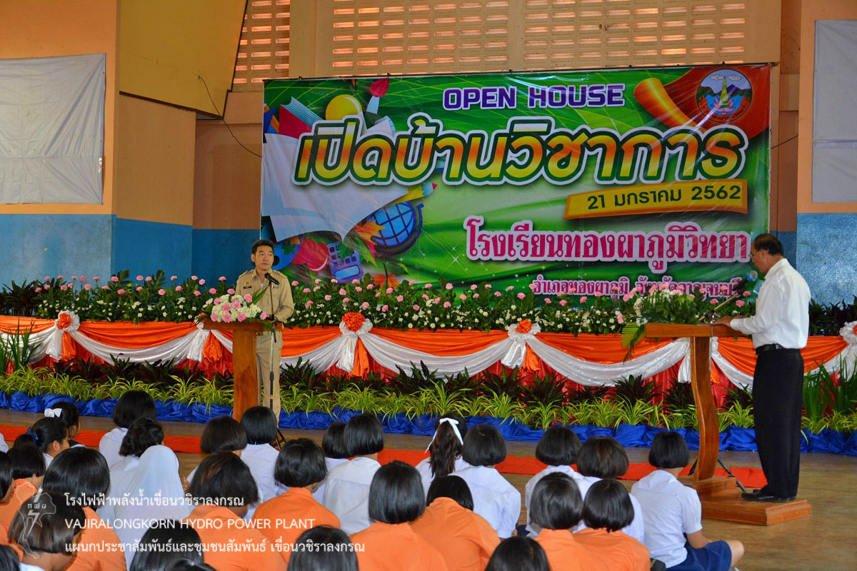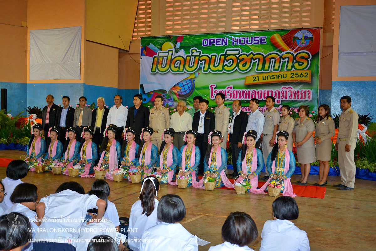 การไฟฟ้าฝ่ายผลิตแห่งประเทศไทย (กฟผ.) เขื่อนวชิราลงกรณ ร่วมพิธีเปิดกิจกรรมเปิดบ้านวิชาการ (Open House) ประจำปีการศึกษา 2562 โรงเรียนทองผาภูมิวิทยา ตำบลท่าขนุน อำเภอทองผาภูมิ จังหวัดกาญจนบุรี