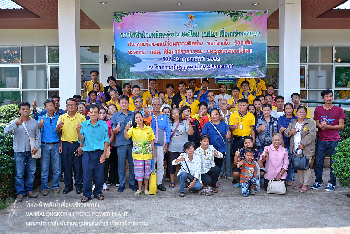 การไฟฟ้าฝ่ายผลิตแห่งประเทศไทย (กฟผ.) เขื่อนวชิราลงกรณ จัดประชุมคณะทำงานร่วมระหว่าง กฟผ.เขื่อนวชิราลงกรณ กับชุมชนที่เข้าร่วมโครงการชีววิถีเพื่อการพัฒนาอย่างยั่งยืน เขื่อนวชิราลงกรณ และจัดประชุมเพื่อแลกเปลี่ยนความคิดเห็น ข้อกังวลใจ ข้อสงสัย ระหว่าง กฟผ. เขื่อนวชิราลงกรณ และชุมชนรอบเขื่อนฯ ประจำปี 2562 ณ อาคารภูมิสุวรรณ เขื่อนวชิราลงกรณ