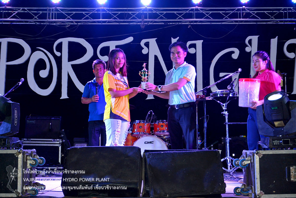 เมื่อวันที่ 24 กุมภาพันธ์ 2562 นายวีระพล สาระพจน์ หัวหน้ากองบำรุงรักษาโรงไฟฟ้า เขื่อนวชิราลงกรณ เข้าร่วมพิธีปิดกิจกรรม Sport Night กศน. อำเภอทองผาภูมิ ณ บริเวณสวนเฉลิมพระเกียรติ ร.9 โดยมีวัตถุประสงค์เพื่อให้นักศึกษามีการพัฒนาศักยภาพด้านกีฬา แสดงความมีน้ำใจเป็นนักกีฬา รู้แพ้ รู้ชนะ รู้อภัย โดยมีนายประเทศ บุญยงค์ นายกเทศบาลตำบลทองผาภูมิ เป็นประธานในพิธี พร้อมด้วยหัวหน้าส่วนราชการ รัฐวิสาหกิจ ผู้นำองค์กรปกครองส่วนท้องถิ่น และนักศึกษา เข้าร่วมงาน ในการนี้ นายวีระพล สาระพจน์ หัวหน้ากองบำรุงรักษาโรงไฟฟ้า เขื่อนวชิราลงกรณ เป็นเกียรติมอบถ้วยรางวัลการแข่งขันกีฬาและของที่ระลึก ให้กับทีมนักกีฬาที่ชนะการแข่งขันกีฬาแต่ละประเภทในปีนี้