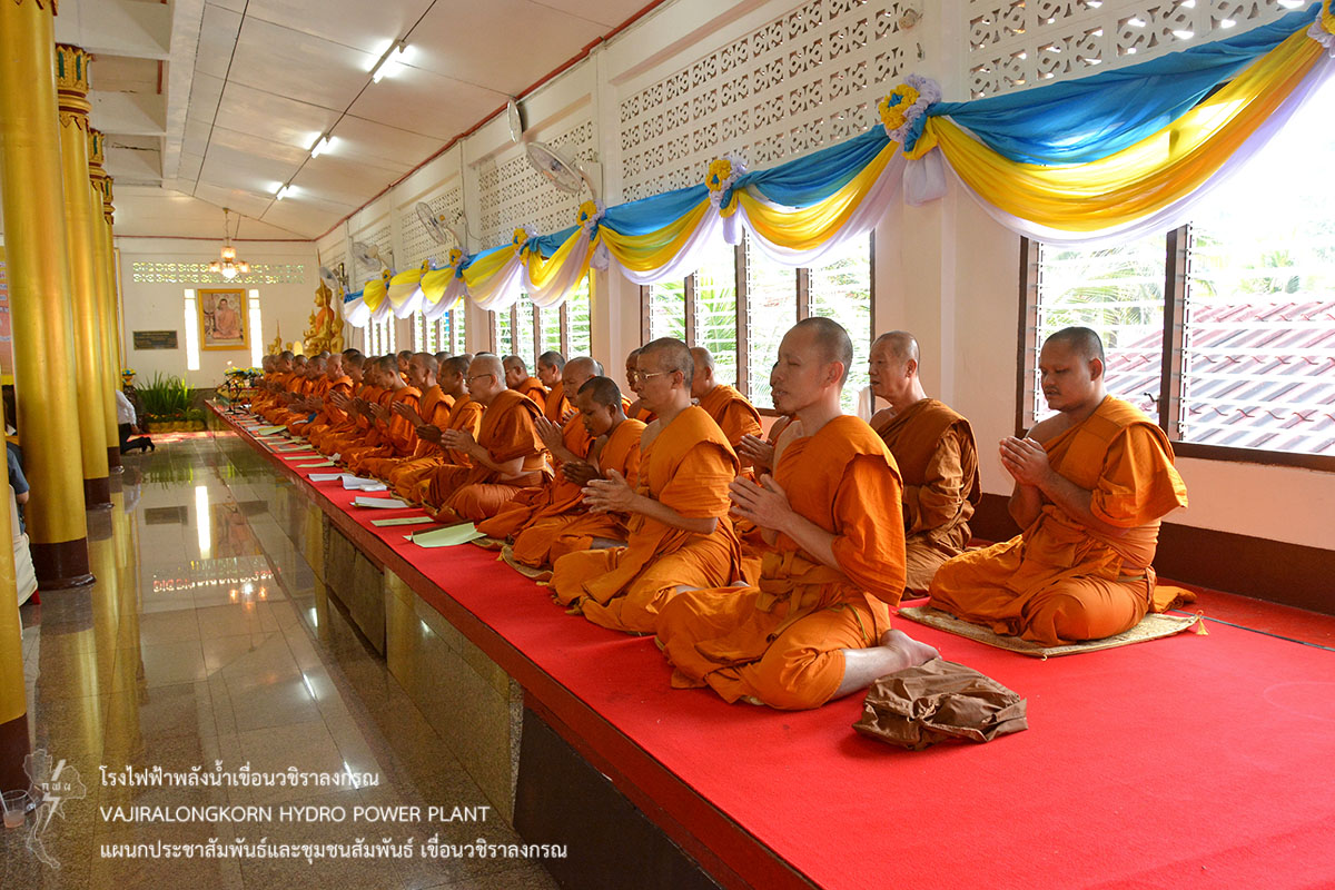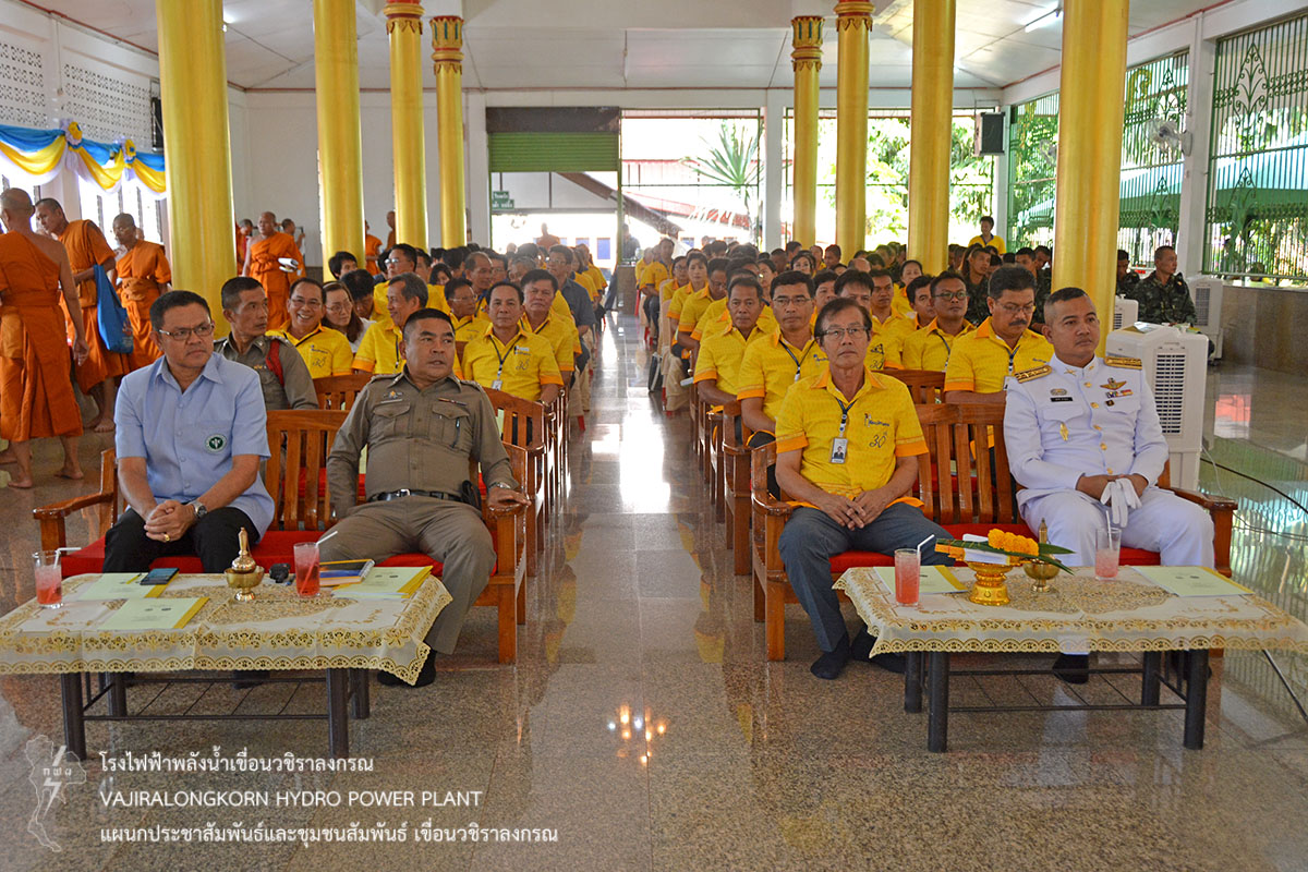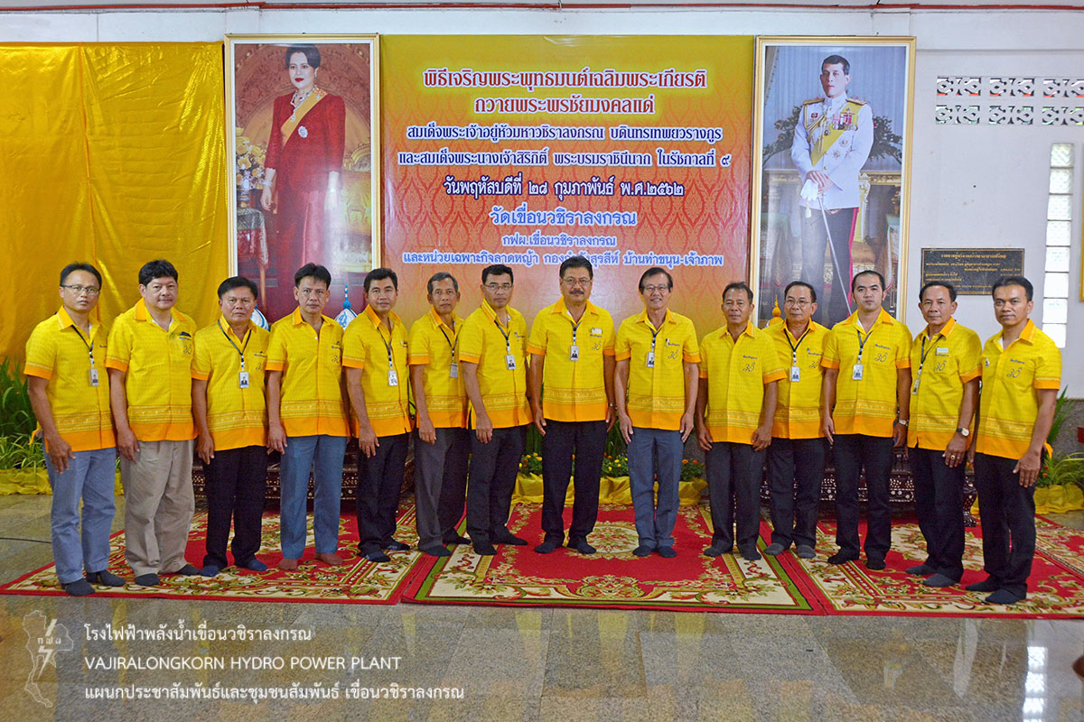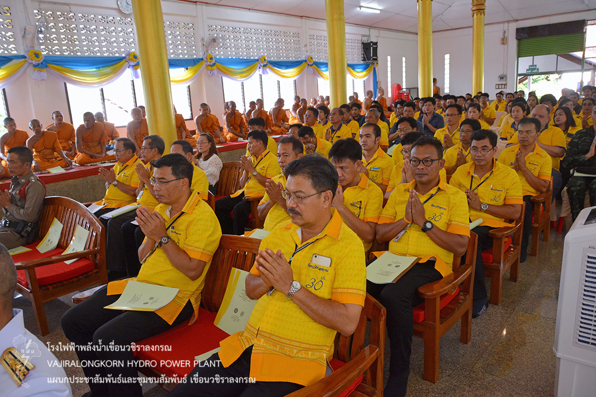 การไฟฟ้าฝ่ายผลิตแห่งประเทศไทย (กฟผ.) เขื่อนวชิราลงกรณ ร่วมกับหน่วยเฉพาะกิจลาดหญ้า กองกำลังสุรสีห์ กองพลทหารราบที่ 9 ร่วมเป็นเจ้าภาพพิธีเจริญพระพุทธมนต์ถวายพระพรชัยมงคลสมเด็จพระเจ้าอยู่หัวมหาวชิราลงกรณ บดินทรเทพยวรางกูร และสมเด็จพระนางเจ้าสิริกิติ์ พระบรมราชินีนาถ ในรัชกาลที่ 9 ประจำปี 2562 ณ วัดเขื่อนวชิราลงกรณ ตำบลท่าขนุน อำเภอทองผาภูมิ จังหวัดกาญจนบุรี