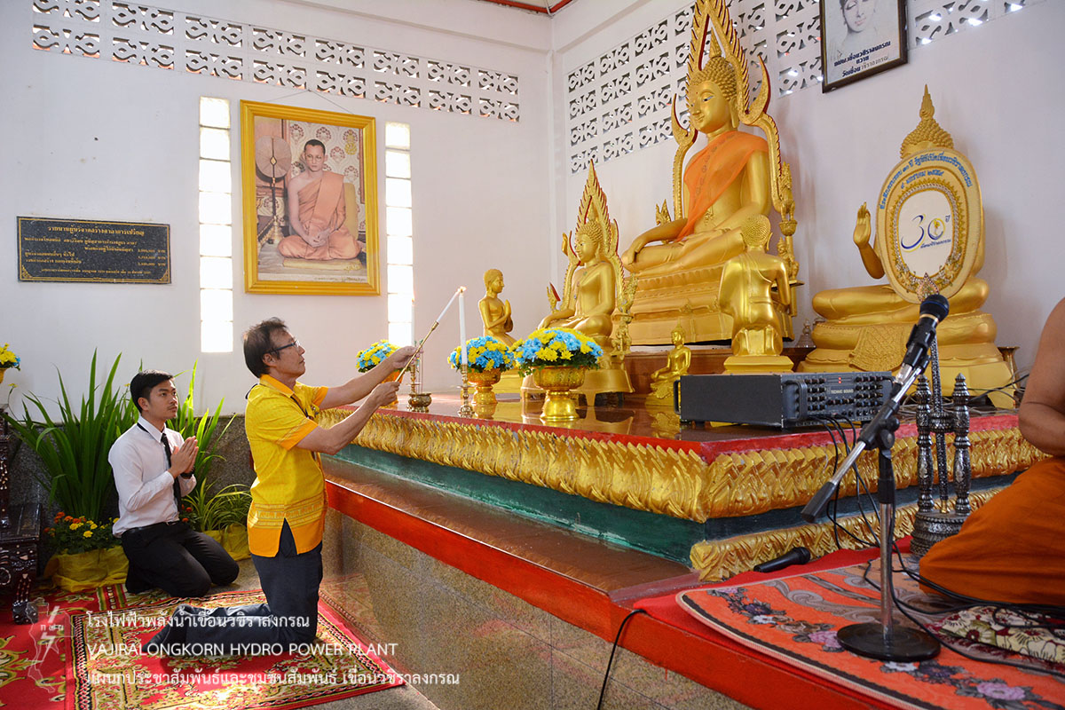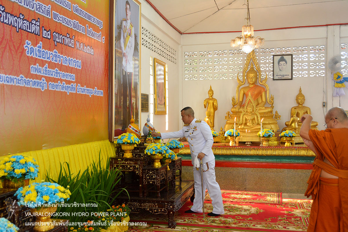 เมื่อวันนี้ 28 กุมภาพันธ์ 2562 นายไววิทย์ แสงพานิชย์ ผู้อำนวยการเขื่อนวชิราลงกรณ (อขว.) เป็นประธานจุดธูปเทียนบูชาพระรัตนตรัย ในพิธีเจริญพระพุทธมนต์ถวายพระพรชัยมงคลสมเด็จพระเจ้าอยู่หัวมหาวชิราลงกรณ บดินทรเทพยวรางกูร และสมเด็จพระนางเจ้าสิริกิติ์ พระบรมราชินีนาถ ในรัชกาลที่ 9 ประจำปี 2562 ณ ศาลาการเปรียญวัดเขื่อนวชิราลงกรณ
