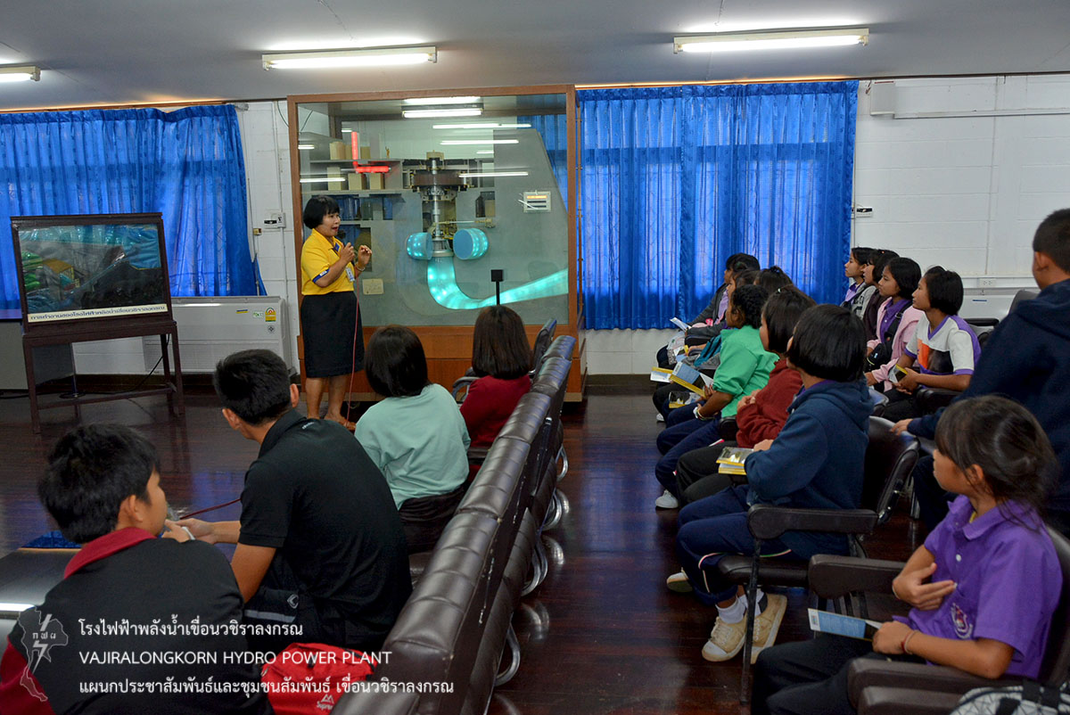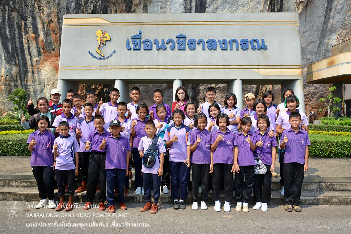 เมื่อวันที่ 25 มีนาคม 2562 นางสาวบาหยัน หวังรวมกลาง พนักงานวิชาชีพระดับ 7 แผนกประชาสัมพันธ์และชุมชนสัมพันธ์ เขื่อนวชิราลงกรณ ให้การต้อนรับคณะครูและนักเรียนระดับชั้นประถมศึกษา ปีที่ 5-6 จำนวน 46 คน โรงเรียนตำรวจตระเวนชายแดนสุนทรเวช หมู่ที่ 1 ตำบลไล่โว่ อำเภอสังขละบุรี จังหวัดกาญจนบุรี ในโอกาสเข้ารับฟังบรรยายสรุปการดำเนินงานของเขื่อนวชิราลงกรณ ณ ห้องบรรยาย แผนกประชาสัมพันธ์และชุมชนสัมพันธ์ เขื่อนวชิราลงกรณ