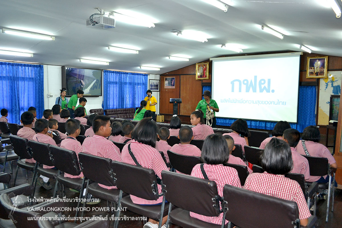 เมื่อวันที่ 26 มีนาคม 2562 นางสาวบาหยัน หวังรวมกลาง พนักงานวิชาชีพระดับ 7 แผนกประชาสัมพันธ์และชุมชนสัมพันธ์ เขื่อนวชิราลงกรณ ให้การต้อนรับนางสุดาพร ชูชื่น ผู้อำนวยการโรงเรียนบ้านวังรัก หมู่ที่ 7 ตำบลหนองโรง อำเภอพนมทวน จังหวัดกาญจนบุรี ในโอกาสนำคณะครูโรงเรียนบ้านวังรัก ผู้ปกครอง และนักเรียนระดับชั้นอนุบาล-ระดับชั้นประถม จำนวน 50 คน เข้ารับฟังบรรยายสรุป การดำเนินงานของเขื่อนวชิราลงกรณ ณ ห้องบรรยาย แผนกประชาสัมพันธ์และชุมชนสัมพันธ์ เขื่อนวชิราลงกรณ