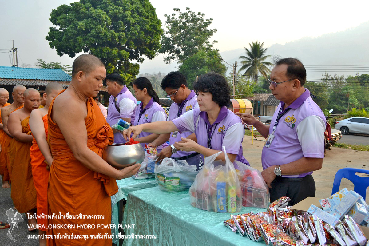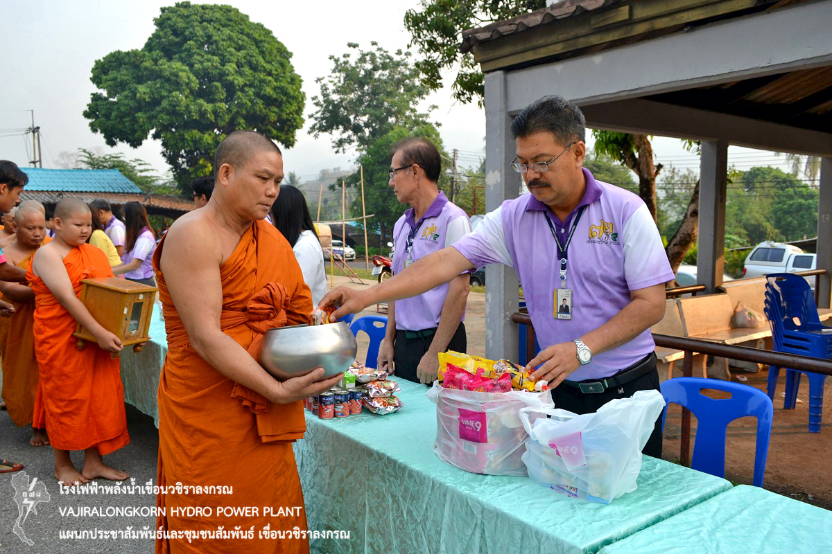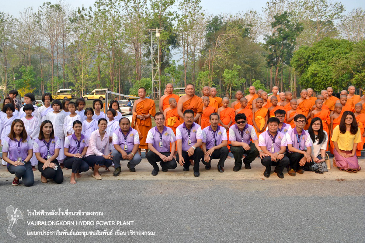 เมื่อวันที่ 2 เมษายน 2561 นายไววิทย์ แสงพานิชย์ ผู้อำนวยการเขื่อนวชิราลงกรณ นายนภฤทธิ์ ผดุงศรี ผู้ช่วยผู้อำนวยการเขื่อนวชิราลงกรณ-1 นายวิกรม เทียนอ่อน หัวหน้ากองบริหาร เขื่อนวชิราลงกรณ พร้อมด้วยผู้ปฏิบัติงานและครอบครัวร่วมทำบุญตักบาตรข้าวสารอาหารแห้งสามเณรภาคฤดูร้อนวัดท่ามะเดื่อ ตำบลห้วยเขย่ง อำเภอทองผาภูมิ จังหวัดกาญจนบุรี ณ สนามเด็กเล่นบ้านพักหมู่ 1 เขื่อนวชิราลงกรณ ในโครงการบรรพชา-อุปสมบทและถือบวชเนกขัมมะศีลจาริณี (บวชภาคฤดูร้อน) ประจำปี พ.ศ.2562 และร่วมกันรับพรเพื่อความเป็นสิริมงคลและถ่ายภาพหมู่เป็นที่ระลึก