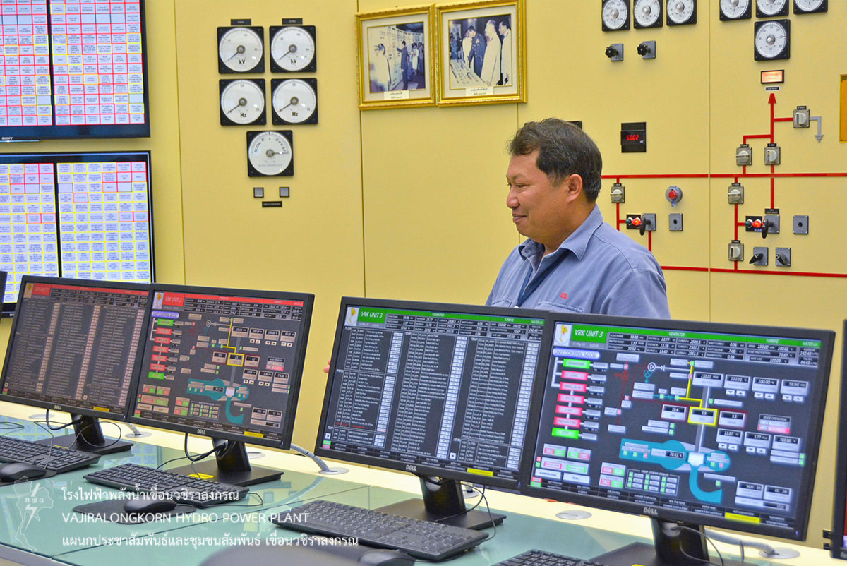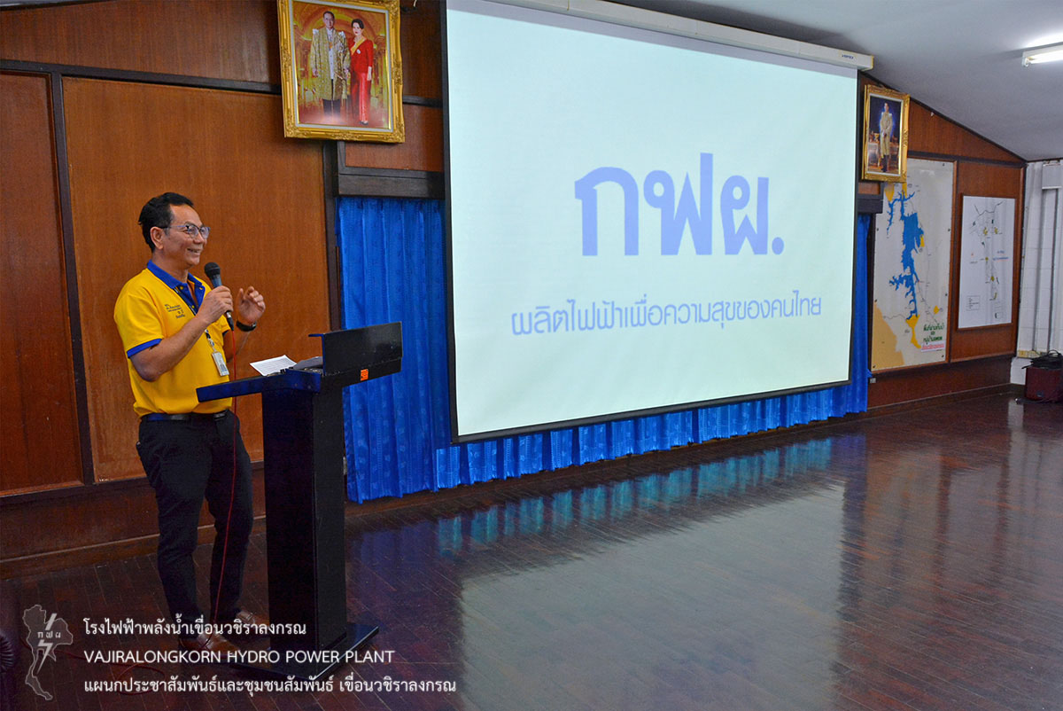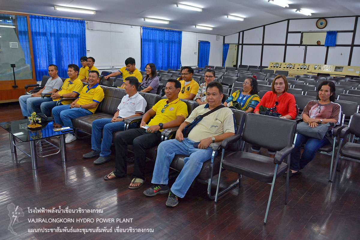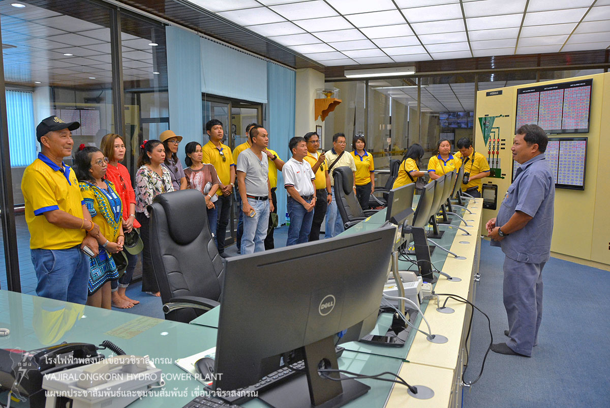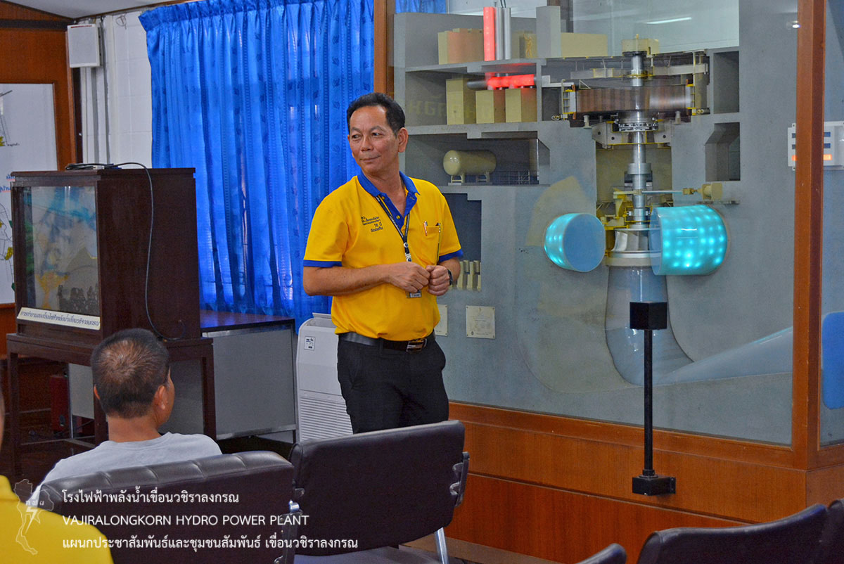 ต่อมานำคณะเข้าชมโรงไฟฟ้าเขื่อนวชิราลงกรณ และฟังบรรยายสรุปขั้นตอนการผลิตไฟฟ้า โดยมีนายชัชวาลย์ วงษา หัวหน้าแผนกเดินเครื่องกะ 3 กองเดินเครื่อง เขื่อนวชิราลงกรณ เป็นวิทยากรบรรยาย