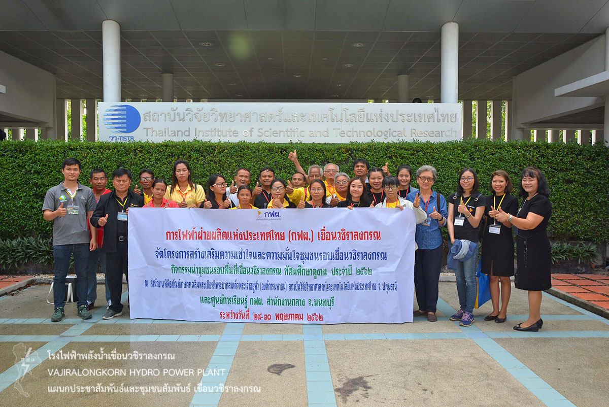ต่อมาในวันที่ 30 พฤษภาคม 2562 นำคณะชุมชนเข้าศึกษาดูงาน ณ สถาบันวิจัยวิทยาศาสตร์และเทคโนโลยีแห่งประเทศไทย จ.ปทุมธานี เพื่อศึกษาแนวทางการนำวิทยาศาสตร์เทคโนโลยีและนวัตกรรม มาส่งเสริมการพัฒนาผลิตภัณฑ์ของชุมชนรอบเขื่อน กฟผ. โดยมี ดร.พิมพ์พันธุ์ ศรีพิพิธ นักพัฒนาธุรกิจอาวุโส สำนักจัดการเทคโนโลยีและนวัตกรรม สถาบันวิจัยวิทยาศาสตร์และเทคโนโลยีแห่งประเทศไทย ให้การต้อนรับ
