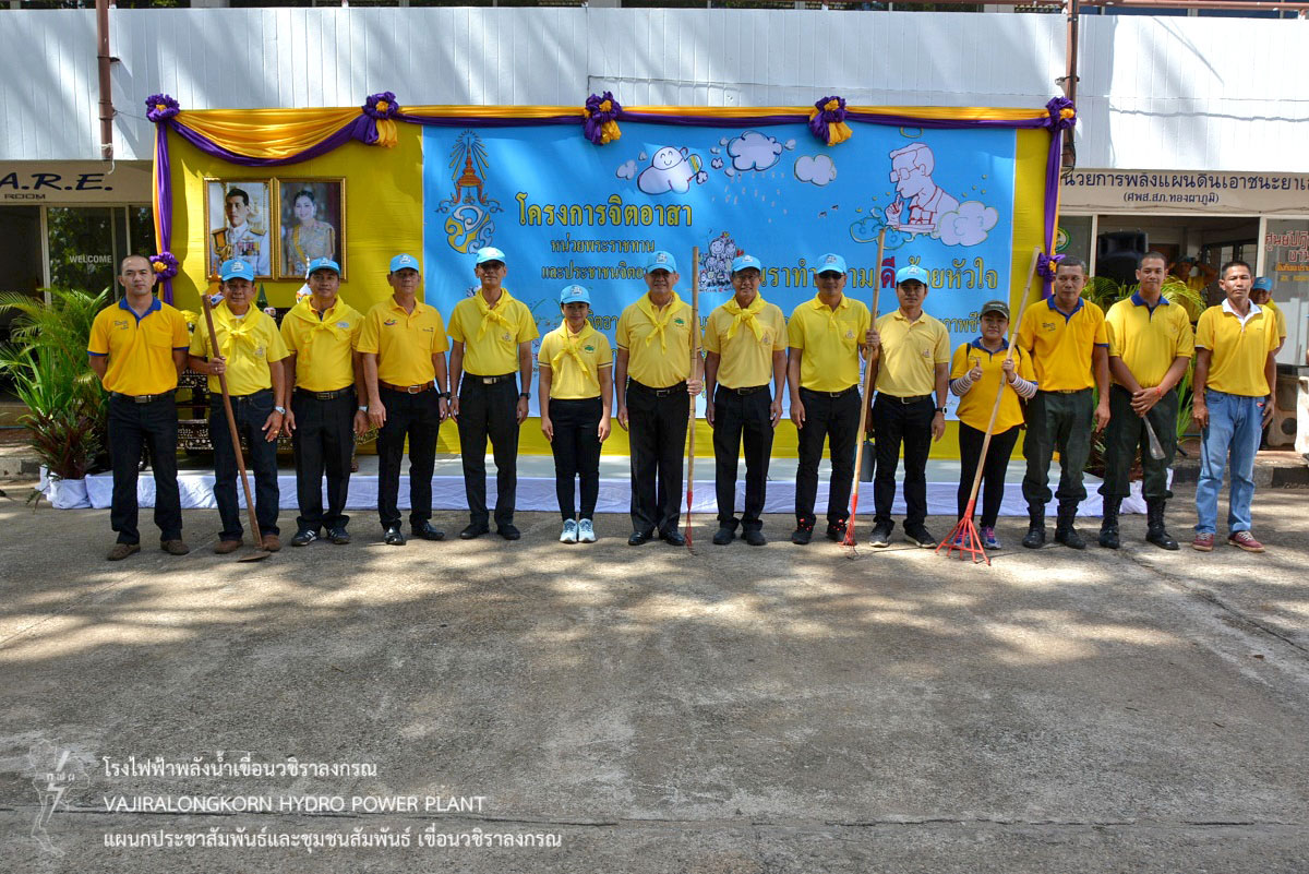 ช่วงสาย จัดให้มีกิจกรรมจิตอาสา “เราทำความดี ด้วยหัวใจ” โดยร่วมกันทำความสะอาดคลองน้ำ และกำจัดวัชพืชในพื้นที่สาธารณะ บริเวณสถานีตำรวจภูธรทองผาภูมิ โดยมี อขว. พร้อมผู้บริหารและผู้ปฏิบัติงานเขื่อนวชิราลงกรณ เข้าร่วมกิจกรรม