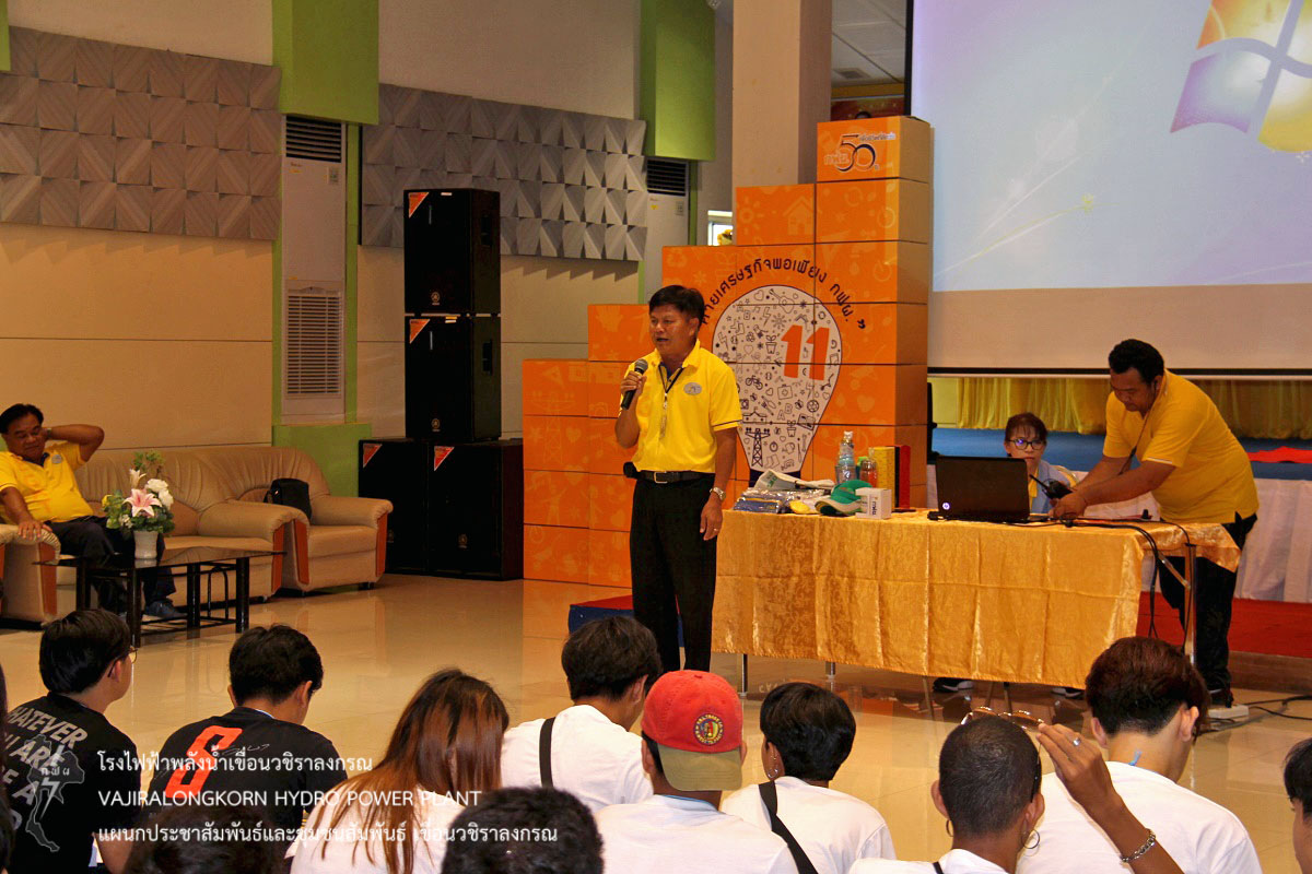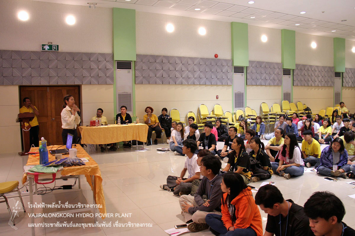 จากนั้นนายสม ขุมโมกข์ หัวหน้าแผนกประชาสัมพันธ์และชุมชนสัมพันธ์ และนางสาวอริยา ก้านทอง วิทยากรระดับ 6 แผนกประชาสัมพันธ์และชุมชนสัมพันธ์ เขื่อนวชิราลงกรณ เป็นวิทยากรบรรยายสรุปภารกิจหลักของเขื่อนวชิราลงกรณ ขั้นตอนการผลิตไฟฟ้า ความมั่นคงปลอดภัยเขื่อน และการทำงานร่วมกับชุมชน ณ อาคารภูมิสุวรรณ
