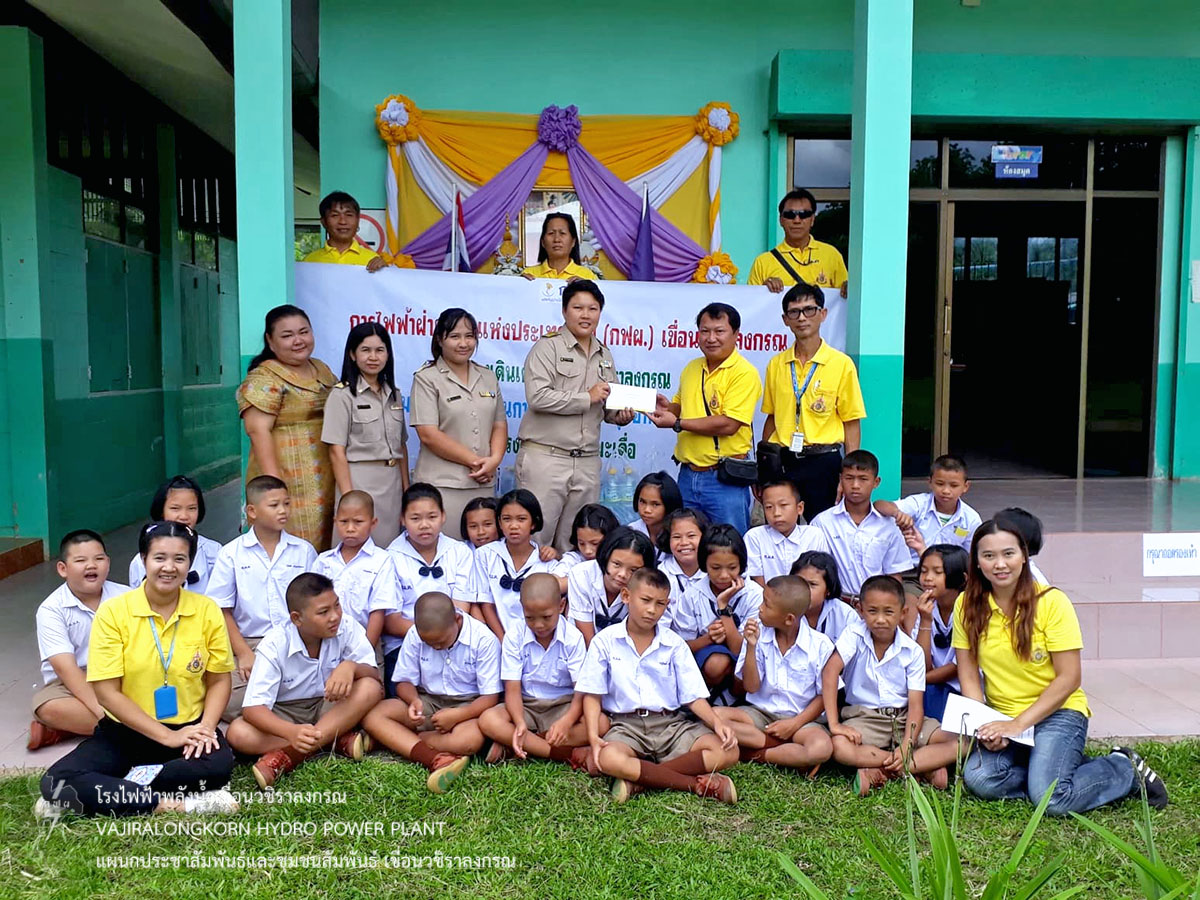 เมื่อวันที่ 20 มิถุนายน 2562 นายสมศักดิ์ อริยวงค์ ช่างระดับ 9 กองเดินเครื่อง พร้อมด้วยนายชัชวาลย์ วงษา หัวหน้าแผนกเดินเครื่องกะ3 กองเดินเครื่อง เขื่อนวชิราลงกรณ นำผู้บริหาร ผู้ปฏิบัติงาน กองเดินเครื่อง เขื่อนวชิราลงกรณ จัดโครงการชุมชนสัมพันธ์และโครงการเสริมสร้างสัมพันธภาพชุมชนรอบเขื่อนวชิราลงกรณ ณ โรงเรียนบ้านท่ามะเดื่อ ตำบลห้วยเขย่ง อำเภอทองผาภูมิ จังหวัดกาญจนบุรี โดยมอบทุนสนับสนุนการศึกษาและจัดเลี้ยงอาหารกลางวันนักเรียน , มอบยาสามัญประจำบ้าน 2 ชุด และน้ำดื่ม “น้ำใจ” กฟผ. โดยมีนางสาวภูวรินทร์ จาริยกันทะวงค์ ผู้อำนวยการโรงเรียนบ้านท่ามะเดื่อ เป็นผู้รับมอบ สำหรับไว้ใช้ในภารกิจของโรงเรียน