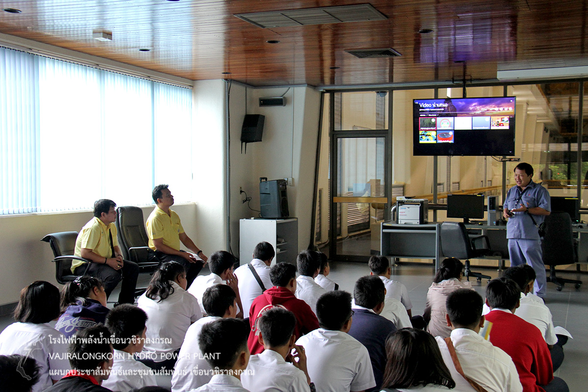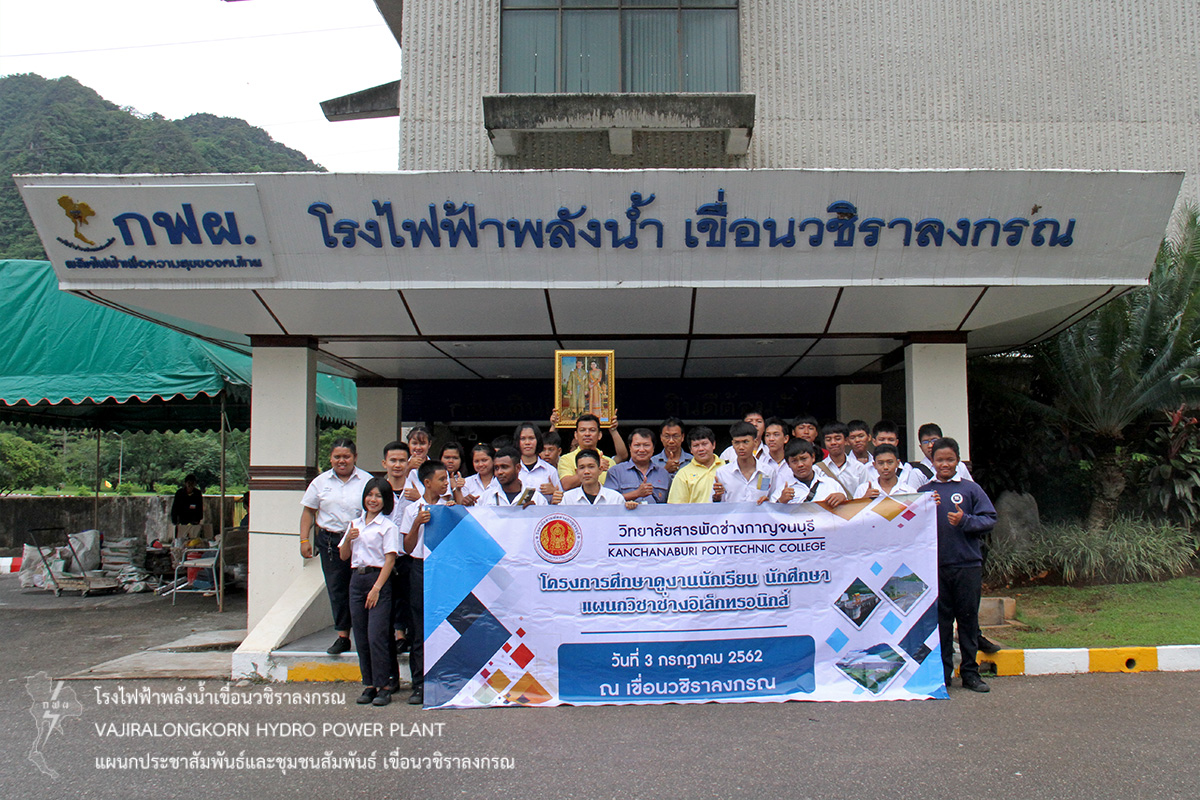 เมื่อวันที่ 3 กรกฎาคม 2562 นายชัชวาลย์ วงษา หัวหน้าแผนกเดินเครื่องกะ 3 กองเดินเครื่อง เขื่อนวชิราลงกรณ ให้การต้อนรับคณะครู นักเรียน นักศึกษา แผนกวิชาช่างอิเล็กทรอนิกส์ วิทยาลัยสารพัดช่างกาญจนบุรี สังกัดสำนักงานคณะกรรมการการอาชีวศึกษา กระทรวงศึกษาธิการ จำนวน 29 คน ในโอกาสเข้ารับฟังบรรยายสรุปการผลิตไฟฟ้าของเขื่อนวชิราลงกรณ ณ แผนกเดินเครื่อง เขื่อนวชิราลงกรณ