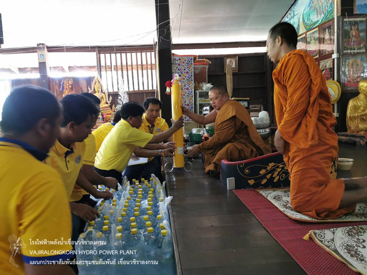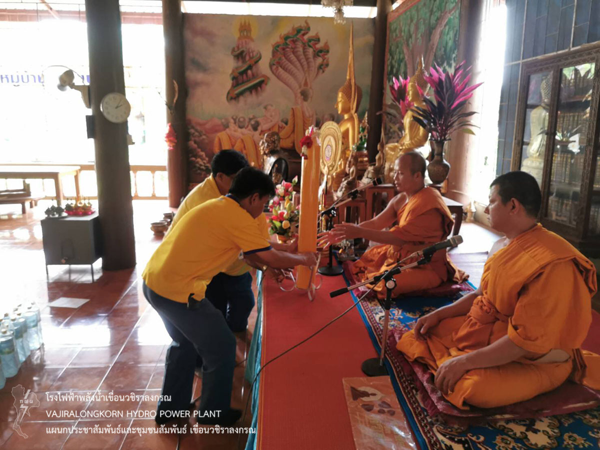 เมื่อวันที่ 12 กรกฎาคม 2562 นายวีระพล สาระพจน์ หัวหน้ากองบำรุงรักษาโรงไฟฟ้า เขื่อนวชิราลงกรณ พร้อมด้วยผู้บริหารและผู้ปฏิบัติงานกองบำรุงรักษาโรงไฟฟ้า เข้าร่วมถวายเทียนจำนำพรรษา น้ำดื่ม “น้ำใจ” กฟผ. พร้อมเงินทำบุญ ณ วัดวังปะโท่ วัดห้วยเขย่ง วัดประจำไม้ และวัดไร่ป้า ตำบลห้วยเขย่ง อำเภอทองผาภูมิ จังหวัดกาญจนบุรี เพื่อเป็นการสืบสานพระพุทธศาสนาให้เจริญรุ่งเรืองตลอดไป