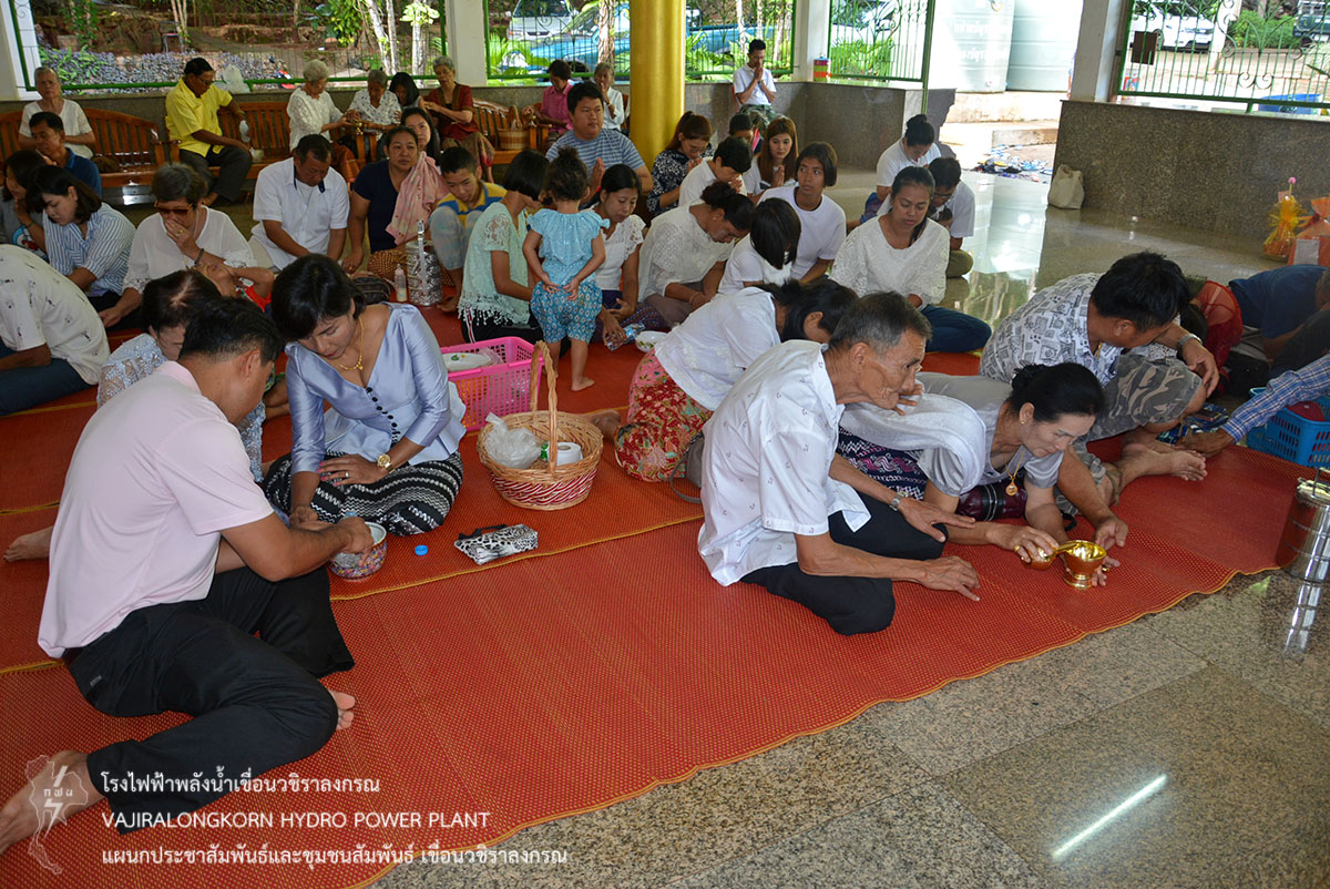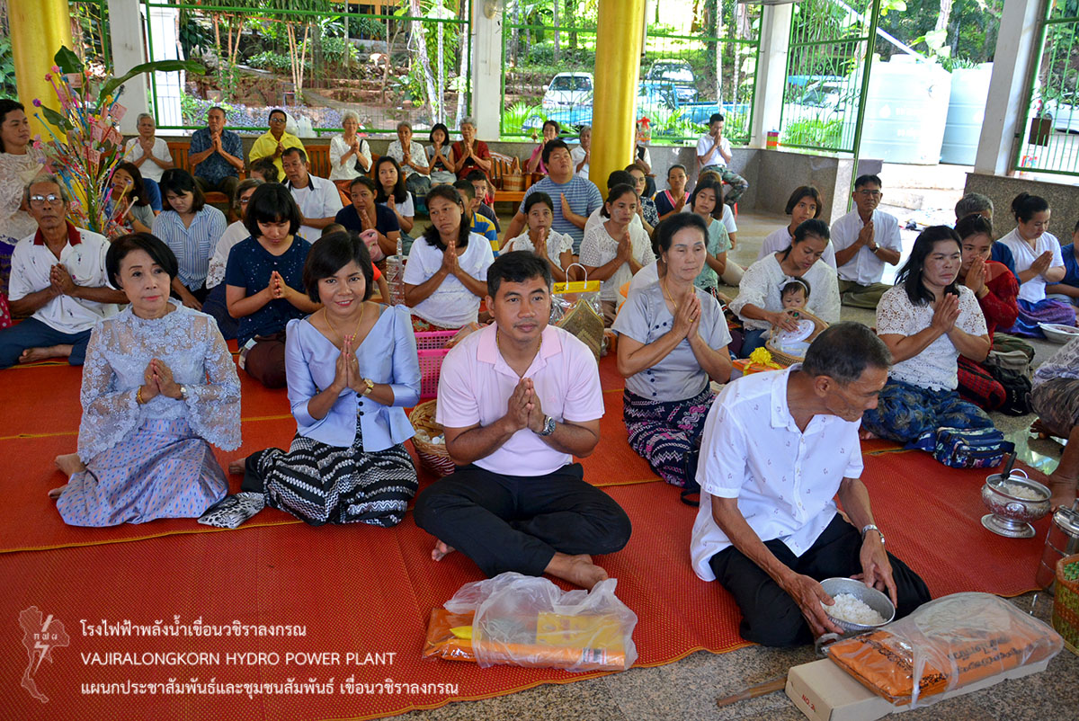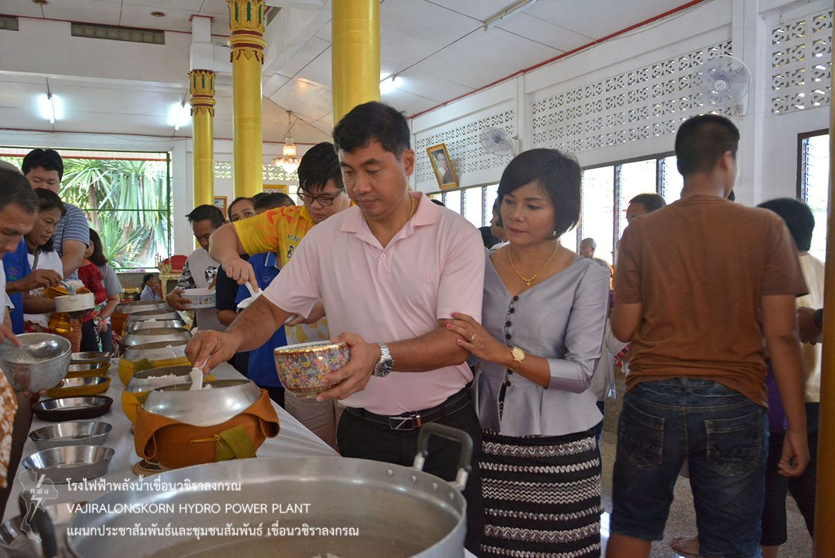 เมื่อวันที่ 16 กรกฎาคม 2562 นายวิรัช ภู่ช้าง หัวหน้ากองเดินเครื่อง (กดว-ฟ.) นายไชยยา สุขสมมล ช่างระดับ 9 ทำหน้าที่แทนหัวหน้าแผนกความปลอดภัย อาชีวอนามัยและสภาพแวดล้อมในการทำงาน (หปอว-ฟ.) พร้อมด้วยผู้บริหารและผู้ปฏิบัติงานเขื่อนวชิราลงกรณ รวมทั้งประชาชนบริเวณใกล้เคียงเข้าร่วมทำบุญเนื่องในวันเข้าพรรษาวัดเขื่อนวชิราลงกรณ ตำบลท่าขนุน อำเภอทองผาภูมิ จังหวัดกาญจนบุรี