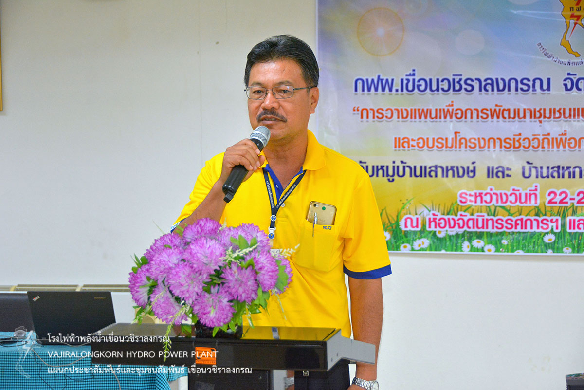 เมื่อวันที่ 22 กรกฎาคม 2562 นายนภฤทธิ์ ผดุงศรี ผู้ช่วยผู้อำนวยการเขื่อนวชิราลงกรณ 1 เป็นประธานเปิดการอบรม หลักสูตรการอบรมเชิงปฏิบัติการ “การวางแผนพัฒนาชุมชนแบบมีส่วนร่วม” ณ ห้องนิทรรศการ อาคารประชาสัมพันธ์ เขื่อนวชิราลงกรณ