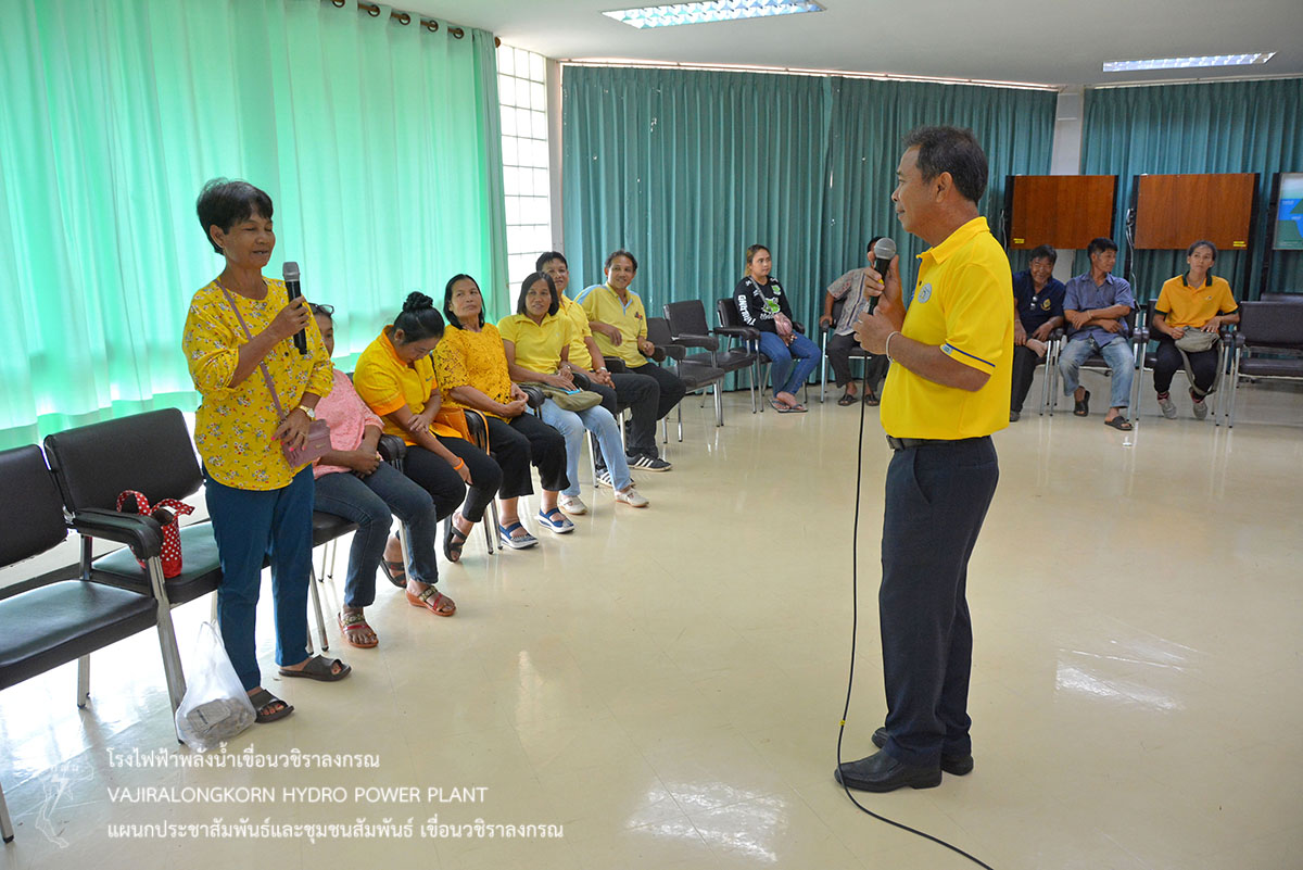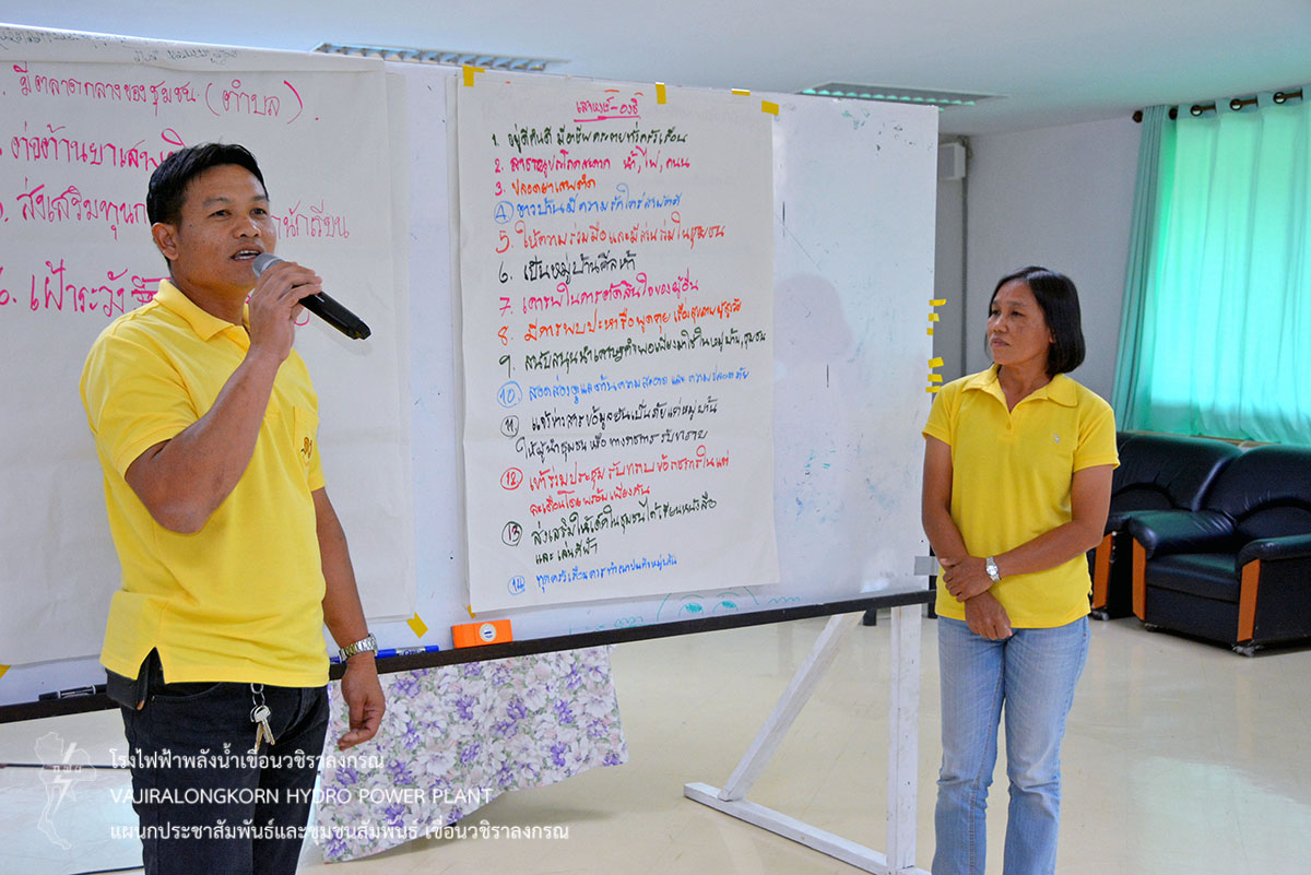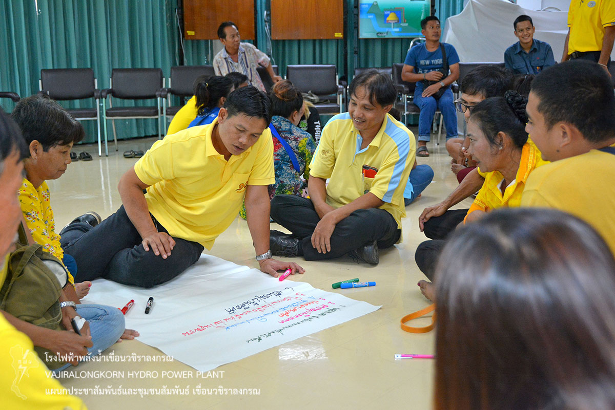 เขื่อนวชิราลงกรณจัดอบรมเชิงปฏิบัติการ "การวางแผนพัฒนาชุมชนแบบมีส่วนร่วม " ให้กับชุมชนหมู่บ้านเสาหงส์ และหมู่บ้านสหกรณ์นิคม" เพื่อให้ชุมชนได้เรียนรู้การทำงานร่วมกันและวางแผนการทำงานแบบพึ่งพาตนเองตามแนวพระราชดำริ เรื่อง เศรษฐกิจพอเพียง