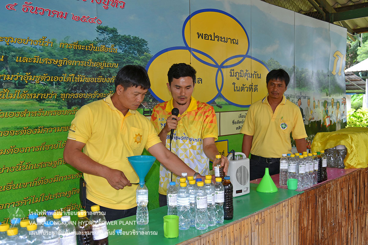 โดยมีคณะทำงานโครงการชีววิถีฯ เขื่อนวชิราลงกรณ ร่วมกับชุมชนหมู่บ้านเสาหงส์ และหมู่บ้านสหกรณ์นิคม เข้ารับการอบรมเชิงปฏิบัติการร่วมกัน จำนวน 45 คน โดยมีการแนะนำผู้เข้ารับการอบรม การละลายพฤติกรรม การบรรยายให้ความรู้ตามหลักแนวทางเศรษฐกิจพอเพียง การเขียนแผนงานและโครงการต่อยอดของชุมชน พร้อมนำเสนอโครงการความคาดหวังของชุมชน เพื่อให้ชุมชนรู้จักวางแผนพัฒนาชุมชนของตนเอง โดยมีนายสุรพล กองแก้ว เป็นวิทยากรอบรม