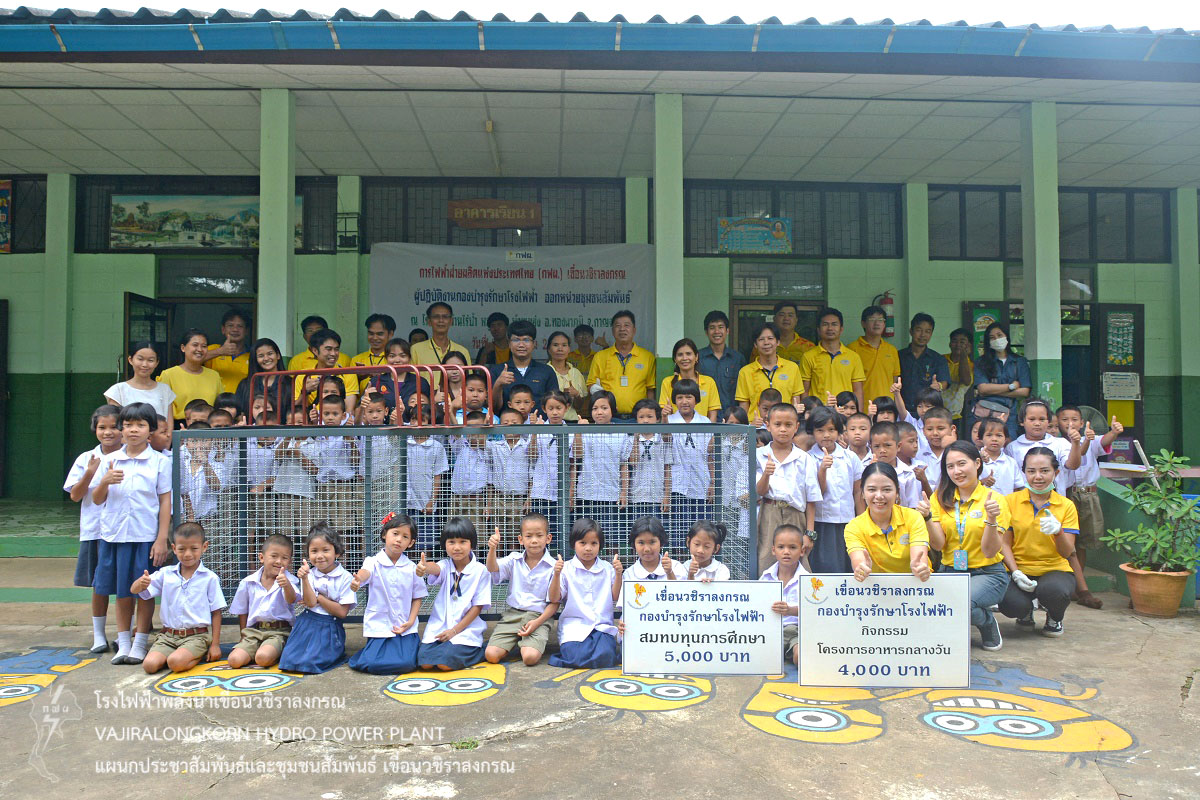 เมื่อวันที่ 23 กรกฎาคม 2562 นายธนสาร ฐานะวุฑฒ์ ผู้ช่วยผู้อำนวยการเขื่อนวชิราลงกรณ-2 นายวีระพล สาระพจน์ หัวหน้ากองบำรุงรักษาโรงไฟฟ้า นำผู้ปฏิบัติงานกองบำรุงรักษาโรงไฟฟ้า เขื่อนวชิราลงกรณ จัดออกหน่วยโครงการชุมชนสัมพันธ์ ณ โรงเรียนบ้านไร่ป้า ตำบลห้วยเขย่ง อำเภอทองผาภูมิ จังหวัดกาญจนบุรี ให้บริการ ซ่อมเครื่องกรองน้ำ ซ่อมแซมระบบไฟฟ้า ทาสีชั้นวางรองเท้า ซ่อมแซมชุดสนามเด็กเล่น มอบน้ำดื่ม มอบยาสามัญประจำบ้าน มอบเงินสมทบทุนการศึกษาเด็กเรียน จำนวน 5,000 บาท และมอบเงินสมทบโครงการอาหารกลางวัน จำนวน 4,000 บาท ให้กับโรงเรียนบ้านประจำไม้ สำหรับไว้ใช้ในภารกิจของโรงเรียน