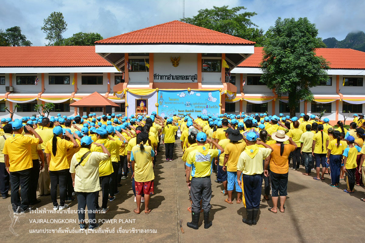 พระเจ้าอยู่หัว โดยมีพิธีทำบุญตักบาตรพระสงฆ์และสามเณร จำนวน 68 รูป ถวายเป็นพระราชกุศล พิธีถวายสัตย์ปฏิญาณเพื่อเป็นข้าราชการที่ดีและพลังของแผ่นดิน พิธีลงนามถวายพระพร ร่วมกิจกรรมจิตอาสา “เราทำความดีด้วยหัวใจ” ณ หอประชุมอำเภอทองผาภูมิ จังหวัดกาญจนบุรี โดยมีนายสืบสาย ศักดิ์โสภิษฐ์ นายอำเภอทองผาภูมิเป็นประธานในพิธี