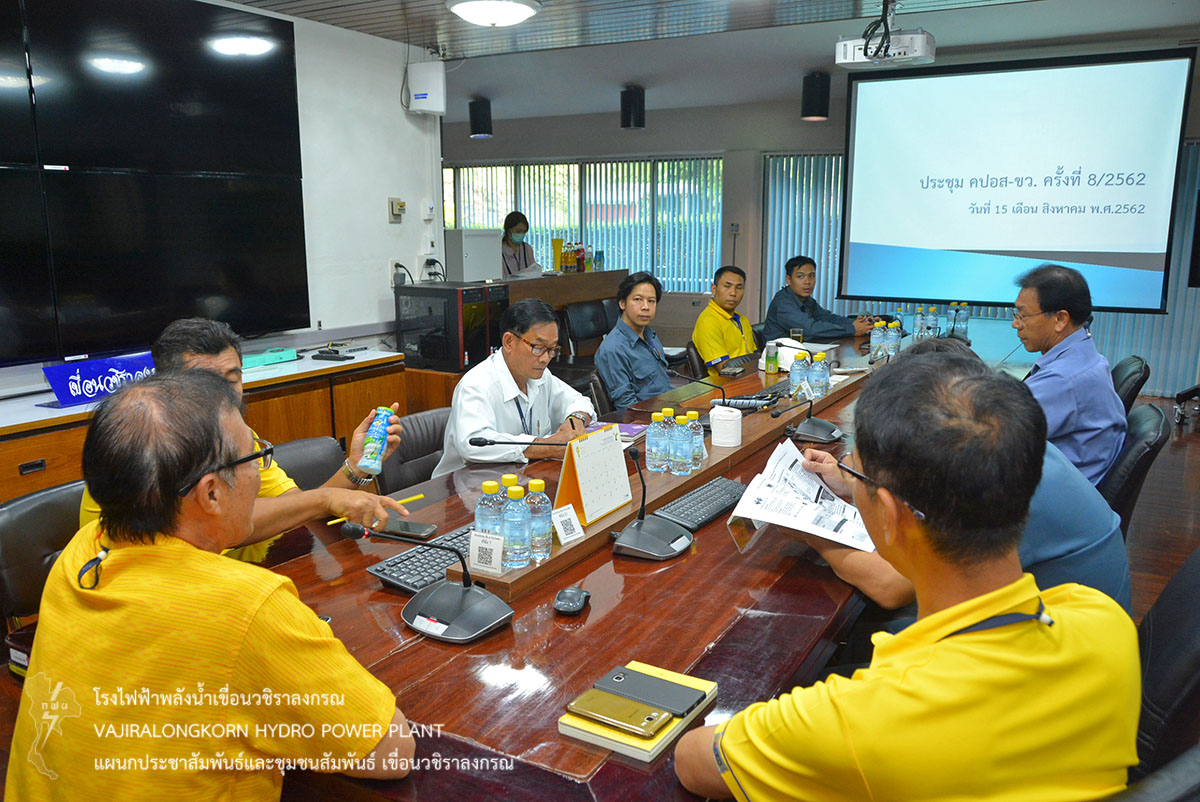 ต่อมาจัดประชุมคณะกรรมการ คปอส-อขว. ณ ห้องประชุมชั้น 5 อาคารโรงไฟฟ้า เขื่อนวชิราลงกรณ เพื่อพิจารณางานสำรวจความปลอดภัย และติดตามแผนงานประจำปี 2562