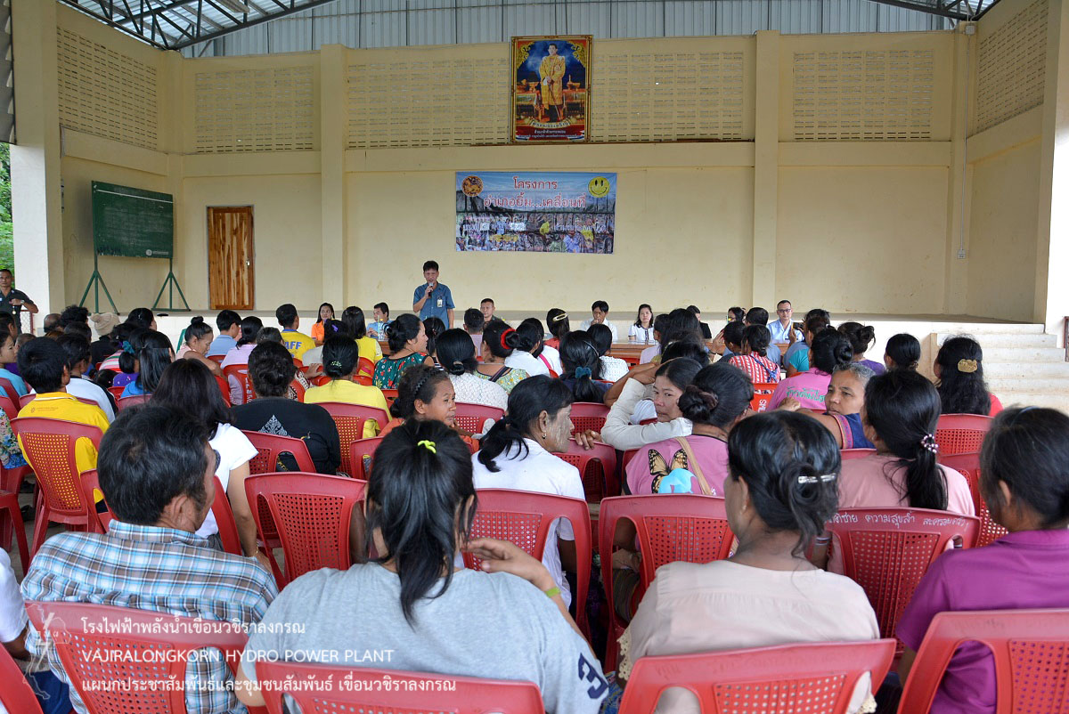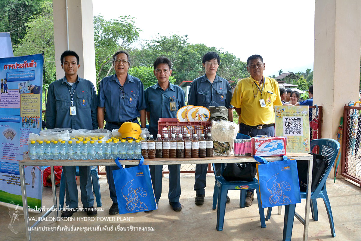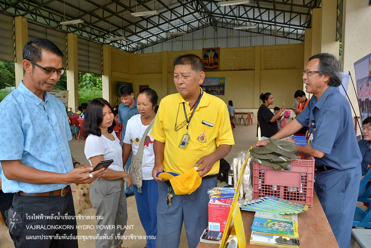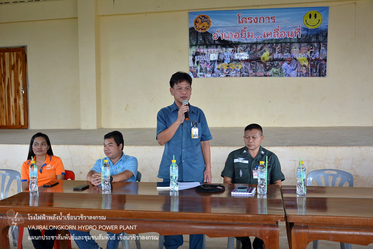เมื่อวันที่ 15 สิงหาคม 2562 นายศรัณย์ โพธิยานนท์ วิศวกรระดับ 10 กองบำรุงรักษาโรงไฟฟ้า เขื่อนวชิราลงกรณ นายมณเฑียร วรนิมมานนท์ ช่างระดับ 8 แผนกวางแผนและประสิทธิภาพ กองบำรุงรักษาโรงไฟฟ้า เขื่อนวชิราลงกรณ พร้อมด้วยผู้ปฏิบัติงานกองบำรุงรักษาโรงไฟฟ้า เขื่อนวชิราลงกรณ ร่วมโครงการอำเภอยิ้ม...เคลื่อนที่ ของอำเภอทองผาภูมิ ณ อาคารเอนกประสงค์ หมู่ที่ 5 ตำบลห้วยเขย่ง อำเภอทองผาภูมิ จังหวัดกาญจนบุรี โดยเขื่อนวชิราลงกรณได้นำน้ำดื่ม “น้ำใจ”กฟผ. และ จุลินทรีย์ EM มอบให้กับประชาชนที่มาเข้าเข้าร่วมโครงการฯ
