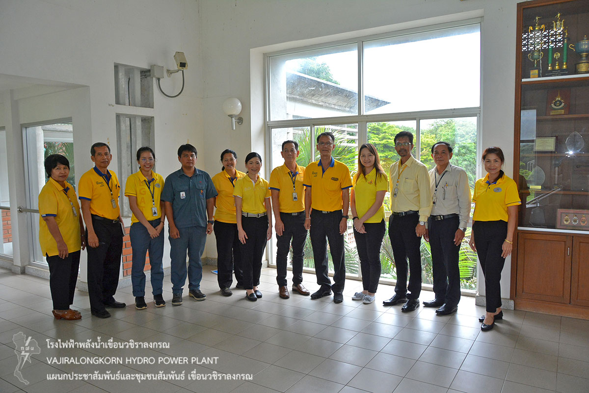 โดยมีนายอภิรักษ์ ทองโต วิศวกรระดับ 11 เขื่อนวชิราลงกรณ นายวีระพล สาระพจน์ หัวหน้ากองบำรุงรักษาโรงไฟฟ้า (กบว-ฟ.) นายชาญชัย พันธ์ไพโรจน์ หัวหน้ากองบำรุงรักษาโยธา (กยว-ฟ.) นายวิกรม เทียนอ่อน หัวหน้ากองบริหาร (กบหว-ฟ.) พร้อมด้วยคณะทำงานและผู้เกี่ยวข้อง เข้าร่วมตรวจประเมินโครงการมาตรฐานสถานที่จัดงานประเทศไทย (Thailand MICE Venue Standards) และมาตรฐานสถานที่จัดงานอาเซียน (ASSEAN MICE Venue Standards) ปี พ.ศ.2562 โดยคณะผู้ตรวจประเมินจากสถาบันรับรองมาตรฐานไอเอสโอ ณ ห้องประชุมเขาแหลม 1 เขื่อนวชิราลงกรณ